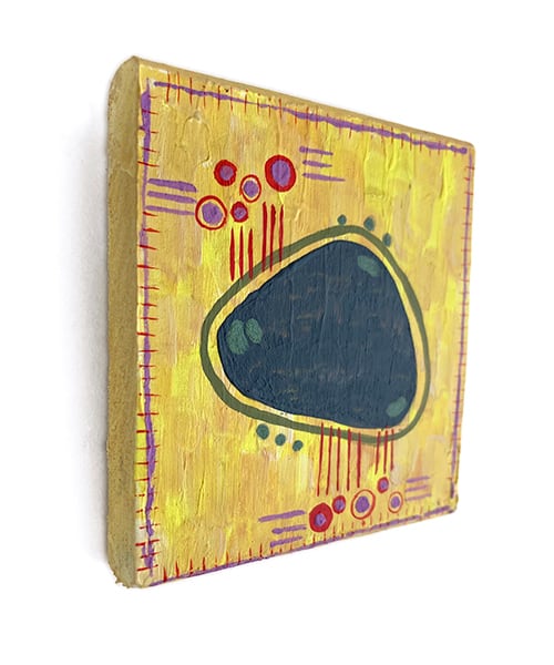 Created on wood with layers of acrylic, watercolor, and pastel.